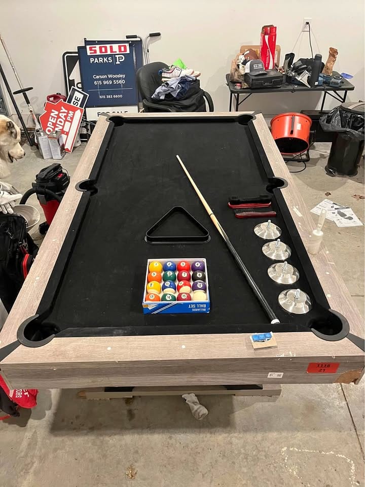 Solid pool table available that’s easy to move—only 2–3 people needed, and help with loading is included.