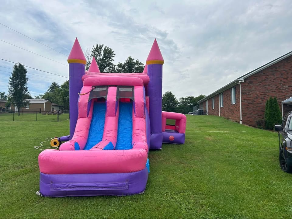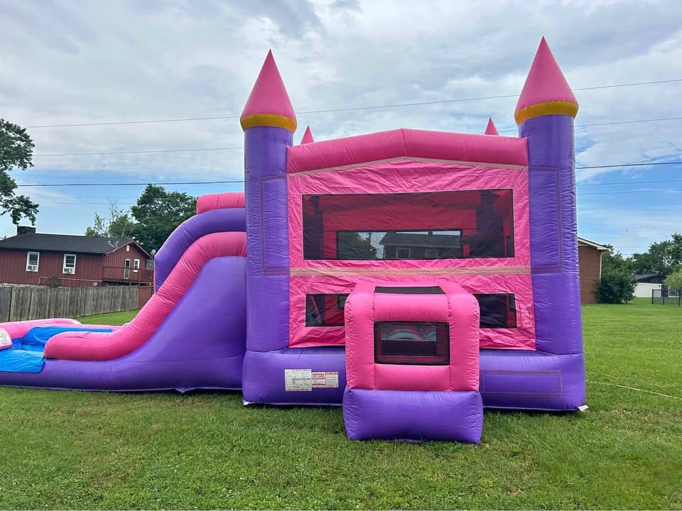 Have you ever wanted an eye-catching pink combo bounce house with double slides?